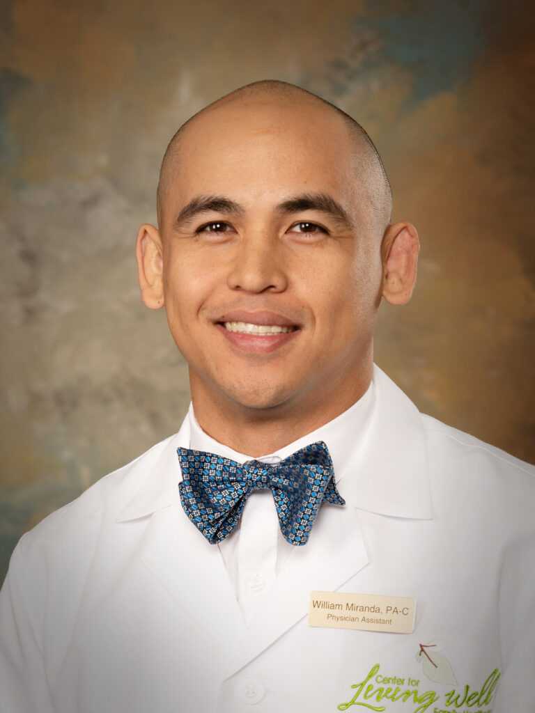 William Miranda received his formal training from Nova Southeastern University in Fort Myers where he earned his master’s degree in Medical Sciences, completed the Physician Assistant Program, and served as class vice president. Mr. Miranda began his career in primary care helping those in underserved communities, and later transitioned to urgent care. He joined the Center for Living Well in 2019 and is grateful to be part of the team that serves the Disney family. Mr. Miranda is happily married with children. When not devoting time to work and family, he enjoys urban farming and staying active.